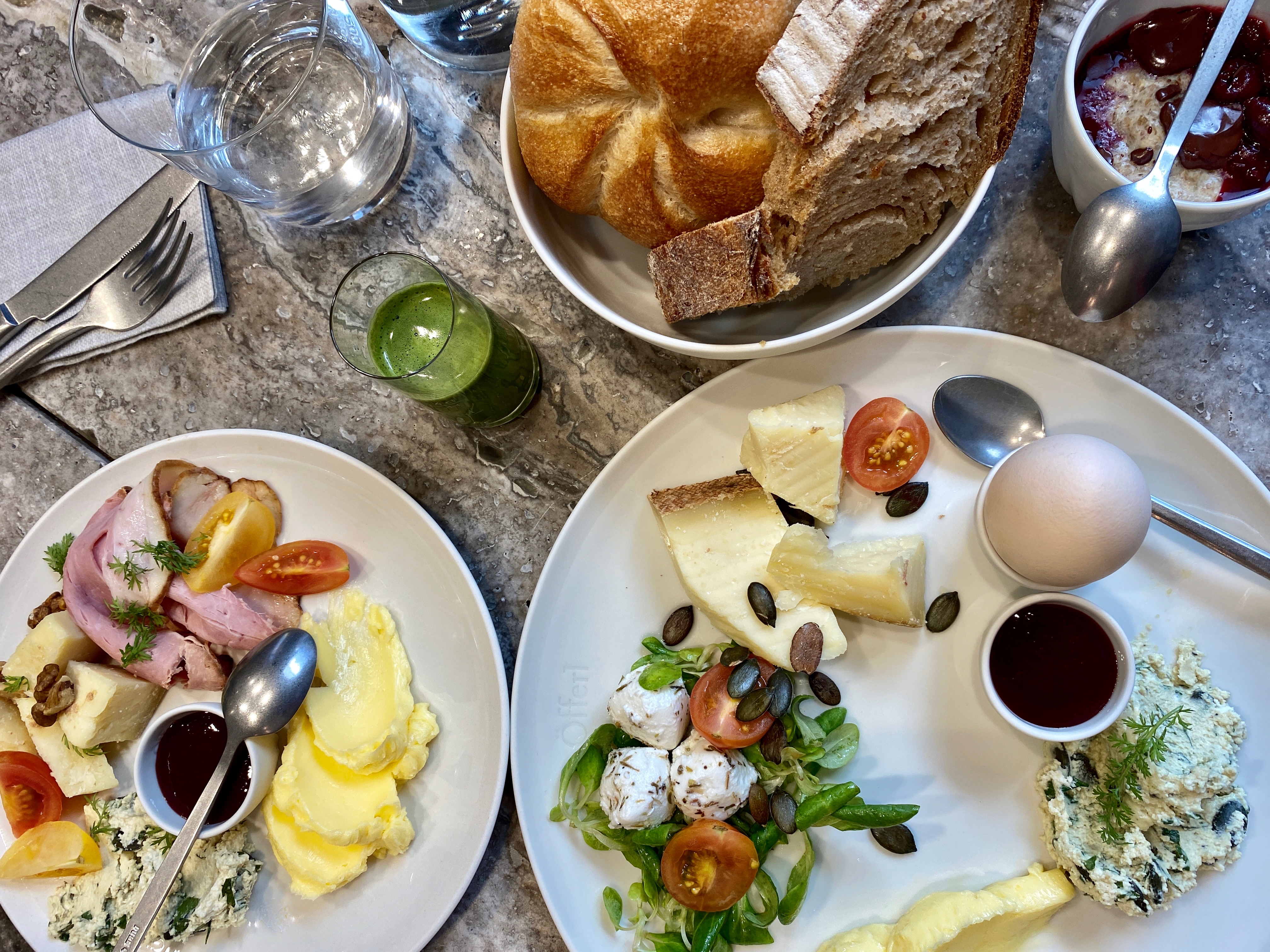 Mit dem jüngst eröffneten Bistro im 3. Bezirk bietet die Familie Öfferl eine trendige neue Location, um schon am Morgen bei Weinviertler Brot mit Charakter mit einem köstlichen Bio-Frühstück in einen vorweihnachtlichen Tag zu starten. Die Bistrokarte ist zwar derzeit noch dieselbe wie in der Wollzeile, aber es wird bereits an neuen Gerichten experimentiert. Wie etwa einem eigenem Weinviertler Focaccia-Brot mit römischer Note dank italienischem Neuzugang im Bäckerteam. Neben einer Schaubäckerei und Coffee Brew Bar werden wir Gäste mit hausgeröstetem Kaffee, diversen Frühstücks-Variationen und regionalen Zutaten verwöhnt. Passend zur großen Heimatverbundenheit von Georg Öfferl heißt uns bereits beim Betreten ein Tresen aus gestampftem, heimischen Lehm willkommen, viel Leidenschaft fürs Bäckerhandwerk sowie eine ganz neue, extra für diese Filiale angefertigte Porzellanserie von „feinedinge„. Denn das Auge ißt bekanntlich mit!